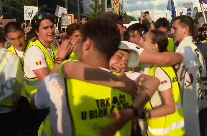 Po 18 dneh teka in pretečenih 2.000 kilometrih je skupina 21 srbskih študentov uspešno zaključila svoj simbolični ultramaraton od Novega Sada do Bruslja. V belgijski prestolnici so jih ob prihodu sprejeli predstavniki srbske diaspore, številni podporniki in evropski poslanci, med njimi tudi slovenska evroposlanka Irena Joveva.