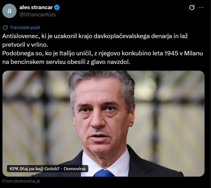 Podjetnik Aleš Štrancar je na X-u znan kot oster kritik (anti)gospodarske politike premierja Roberta Goloba in njegove vladavine na splošno. Ob enemu zadnjih njegovih X-ov, v katerem ostro kritizira Goloba, hkrati pa potegne vzporednice z fašistično Italijo pod Mussolinijem, so se organizirano odzvali v vladajoči stranki Svoboda ter tej vladi naklonjenih medijih.