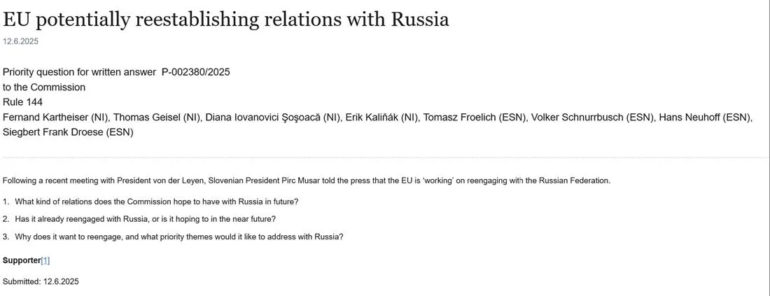 A, kot piše dopisnik Dela in POP TV iz Moskve, Peter Žerjavič, je stališče Pirc Musarjeve in Kartheiserja v EP dobilo podporo “le peščice skrajnih desničarjev, Nemca iz BSW in Slovaka iz Ficove stranke.”