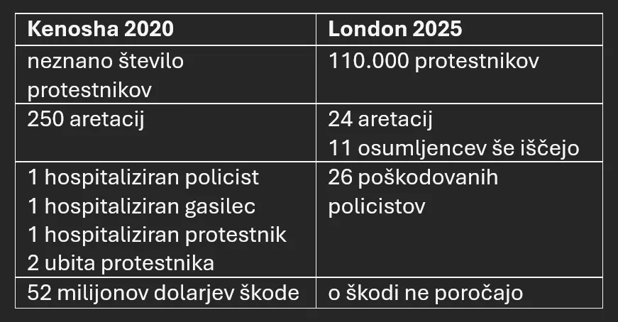 O protestu proti ilegalnemu priseljevanju v Londonu minulo soboto, ki bi ga lahko označili za “v glavnem mirnega”, je CNN poročal pod naslovom “Skrajno desni protipriseljenski protesti v Londonu so vodili v spopade s policijo”. Primerjava obeh protestov: