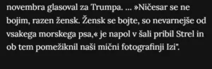 Žal pa nagrada vse pogosteje tudi povsem utemeljeno družbeno kritiko, ki jo izrazi konservativnejša stran, zavrne kot seksizem, namesto da bi se z njo argumentirano soočila. S tem izgublja dragoceno priložnost, da bi tudi lastna izhodišča redno preizkušala v odprti razpravi, in hkrati tvega, da se iz nujne družbene budnosti razvije zaprt ideološki okvir, ki ne dopušča več dialoga.
