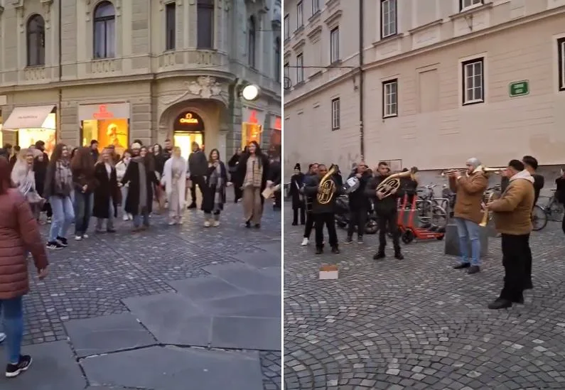 Tokrat je nekaj takšnega v oči in ušesa padlo hrvaški online skupnosti foruma Reddit. Tam je v začetku decembra neki uporabnik objavil vidoposnetek s Prešernovega trga, na katerem igrajo trubači (srb. godbeniki na pihalnih instrumentih), mimoidoči pa plešejo kolo, tradicionalni balkanski ples. Avtor posnetka je zapisal, da se “Slovenija spreminja v Srbijo … to je glavni trg v Ljubljani … slišite trubače, vidite ljudi, ki plešejo kolo”. Objavo je sklenil z vprašanjem, kako uporabniki gledajo na tako dogajanje.
