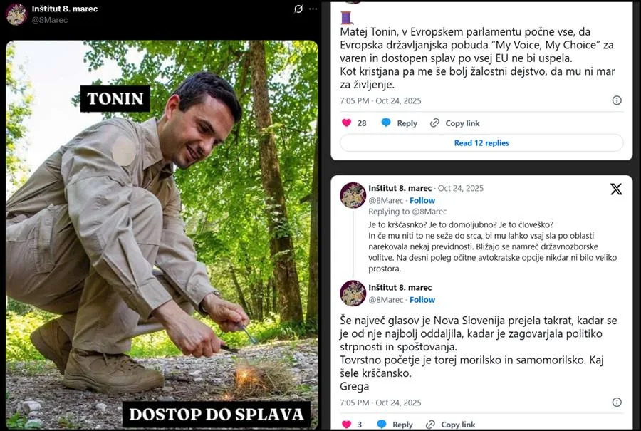 Našli so ga v evropskem poslancu in nekdanjem predsedniku NSi Mateju Toninu. Ta je o Inštitutu, njegovem delovanju in namigih, ki so kot nekakšen “damage control” začeli prihajati v pričakovanju neuspeha njihove akcije – češ da so krivi nekateri slovenski evropski poslanci, jasno izrazil svoje mnenje na socialnem omrežju X :