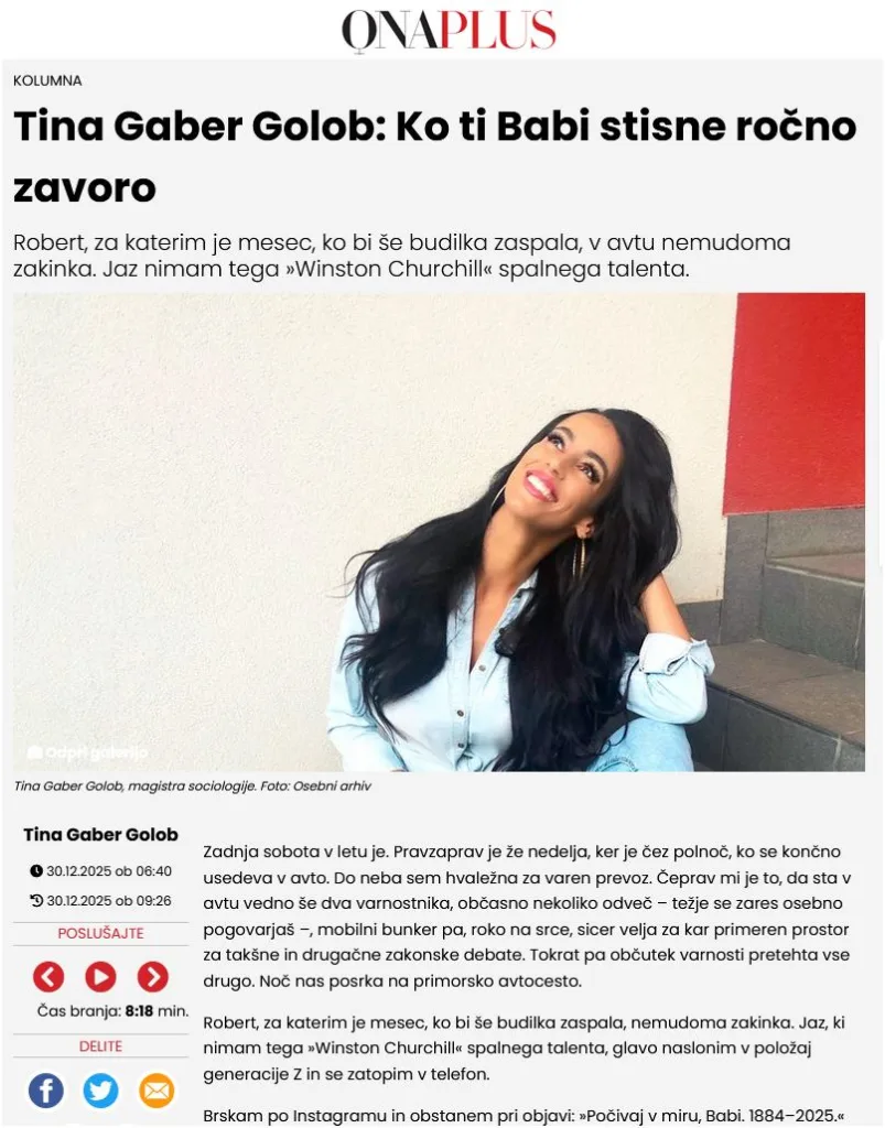 Prva kolumna Tine Gaber sama po sebi ni politični pamflet. Ne poziva k takšni ali drugačni politični izbiri, ne hvali vlade, ne napada opozicije. Gre za osebno, mehko besedilo, takšno, kot jih lifestyle revije objavljajo vsak dan. A problem ni v vsebini. Problem je v kontekstu.
