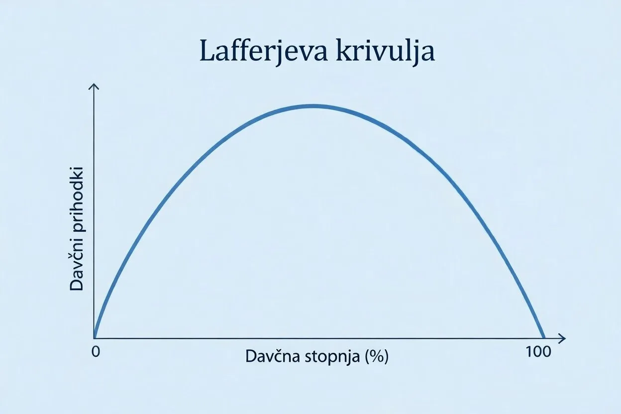 Lafferjeva krivulja, poimenovana po ameriškem ekonomistu Arthurju Lafferju, ima obliko obrnjene črke U in je v osnovi dokaj trivialna. Pri davčnih stopnjah nič in sto odstotkov država ne pobere nič davkov, nekje vmes pa ima krivulja vrh. Če se nahajamo na padajoči strani krivulje, se z višanjem davkov prilivi v državno blagajno zmanjšujejo, z nižanjem davkov pa povečujejo. Ljudje namreč ob previsokih davkih prilagodijo svoje vedenje, na primer manj delajo in investirajo.