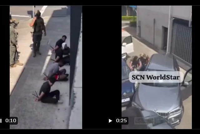 Heavily armed Aussie police ram a car in Sydney and arrest 5 Muslims suspected of being en route to Bondi Beach for a copycat attack.