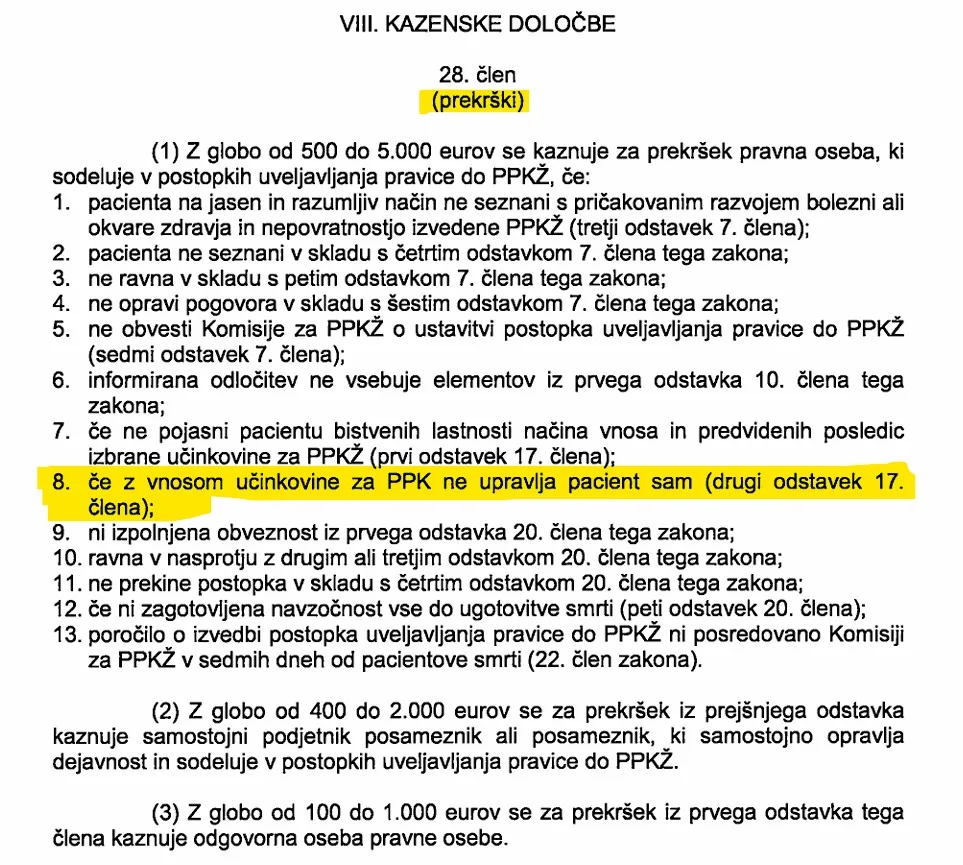 Nekateri pravniki opozarjajo, da je Zakon o pomoči pri prostovoljnem končanju življenja (ZPPKŽ) protiustaven, ker v Ustavi Republike Slovenije piše: “Človekovo življenje je nedotakljivo.”