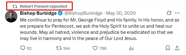 Iz računa na omenjenem X profilu z imenom kardinala Prevosta so bile tudi objave, ki so grajale ukinitev programa DACA (gre za program, ki je zagotavljal pravno varstvo za otroke, ki so v ZDA prišli brez dokumentov) s strani Trumpa, in so bile označene kot “brezsrčne” in kot spodbujanje “rasizma in nativizma”.
