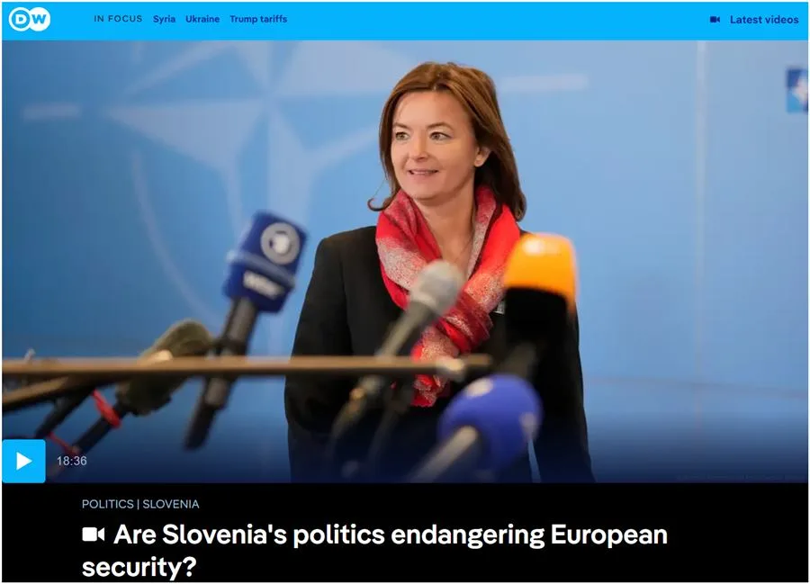 “Ali je lahko Slovenija, majhna država tista, kjer se začne uresničevati ruski plan?” se sprašuje novinar nemškega portala DW Richard Walker, in opozarja na to, kar strokovnjaki že dolgo govorijo, da bo Rusija poskusila spreti članice Nata med seboj. V uvodni špici intervjuja s slovensko zunanjo ministrico Tanjo Fajon razloži, da je dogajanje v Sloveniji doseglo dno v medkoalicijskih obračunih in celo z grožnjami o referendumu o članstvu v Natu.