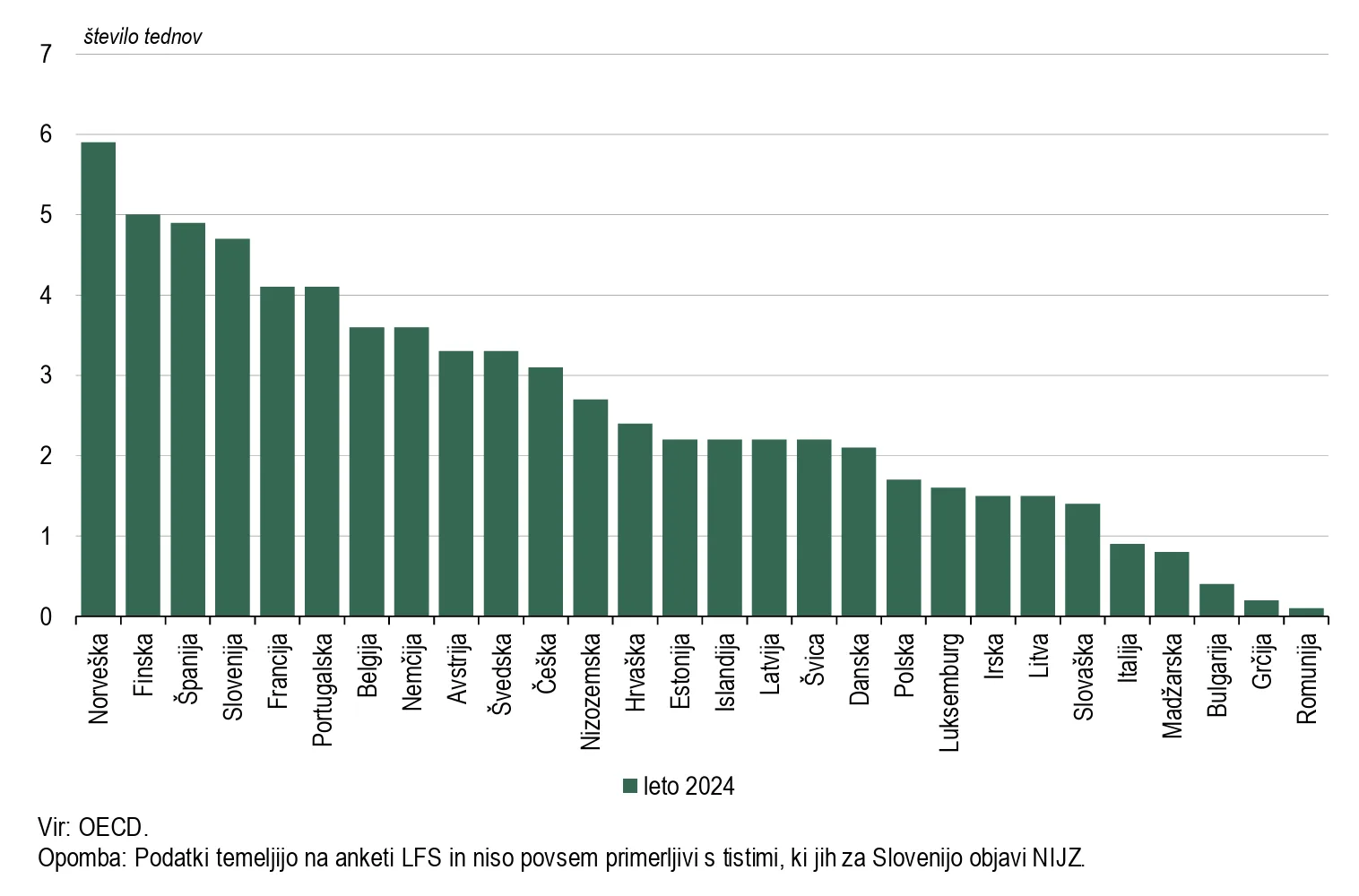 Po podatkih OECD je bila Slovenija leta 2024 po številu izgubljenih delovnih dni na zaposlenega četrta med državami OECD – tik za Norveško, Finsko in Španijo. Še leta 2014 je bila Slovenija osma. Gre za enega najhitrejših porastov v Evropi.