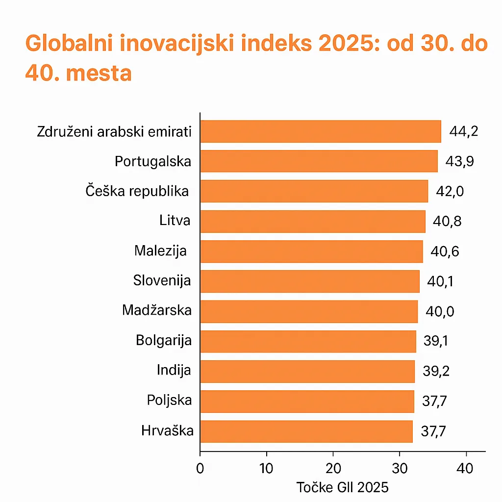 Očiten napredek je naredila Hrvaška, ki se je povzpela z lanskega 43. mesta na 40. mesto. V zadnjem obdobju je napredovala predvsem na področju infrastrukture, dostopa do financiranja ter ustvarjalnih in digitalnih dejavnostih. K boljšim rezultatom sta prispevala tudi stabilnejše raziskovalno okolje in okrepljena institucionalna podpora inovacijam, kar vključuje boljše upravljanje, učinkovitejše javne storitve in jasnejše regulativne okvirje.
