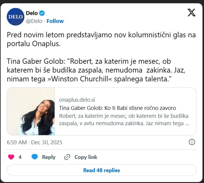Da ja kdo izjemnega pisanja premierjeve soproge ne bi zgrešil, so jo pri Ona plus prijazno odklenili za vse bralce, čeprav so sicer vse njihove kolumne dostopne samo naročnikom.