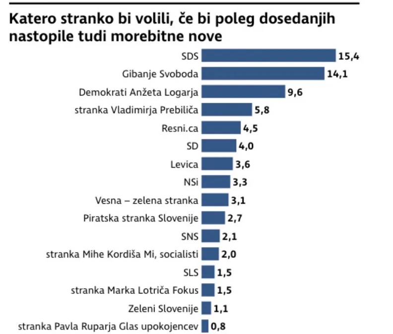 Danes objavljeni izsledki raziskave Mediane za časnik Delo namreč kažejo na hipotetično možnost nečesa, kar bi lahko poimenovali tudi tretji blok. Če seštejete odstotne točke Vladimirja Prebiliča in SD levo od sredine, ter Demokratov in NSi desno od nje, se številka ustavi pri 22,7. Če dodate še SLS in Fokus, pri 25,7. Ena plus ena v politiki sicer res nikoli ni dve. A tudi zaokroževanje navzdol sporoča “računajte na nas”.