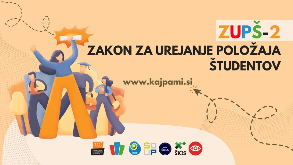“Zakon za urejanje položaja študentov ZUPŠ-2 študentom in dijakom namenja 19 ukrepov v skupni vrednosti 35 milijonov evrov letno, ki jih ne bo potrebno plačati njihovim staršem ali jih ne bodo morali zaslužiti sami,” so zapisali pri Študentski organizaciji Slovenije (ŠOU), ko so lani zbirali podporo za predlog zakona. ZUPŠ-2 so včeraj v zakonodajni postopek vložili poslanci koalicije.